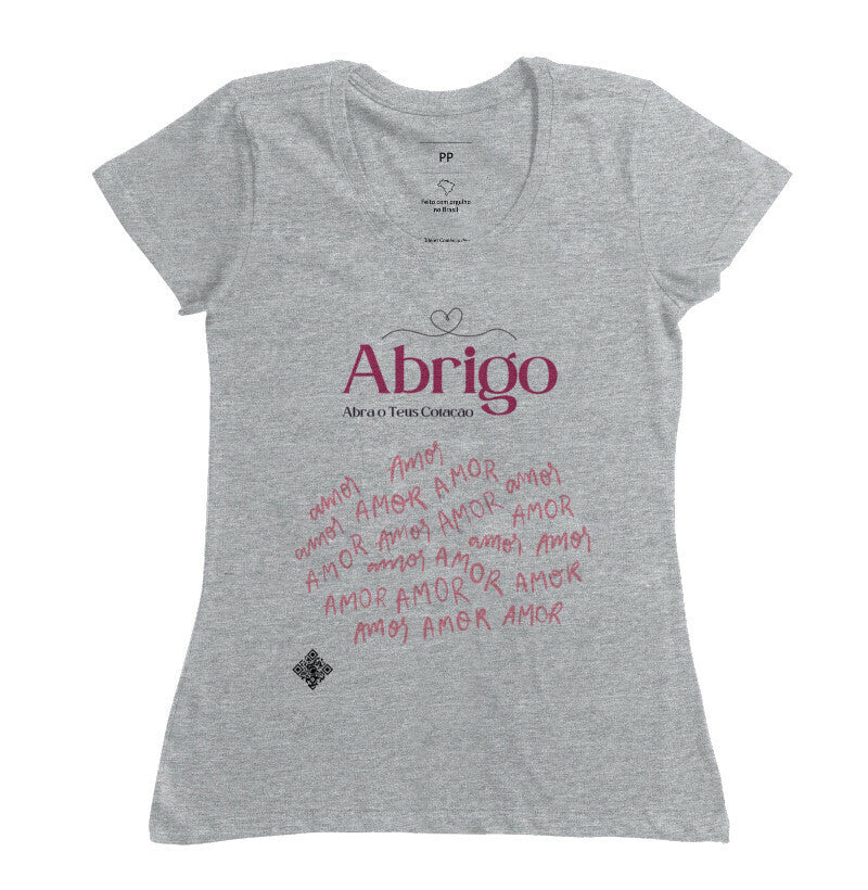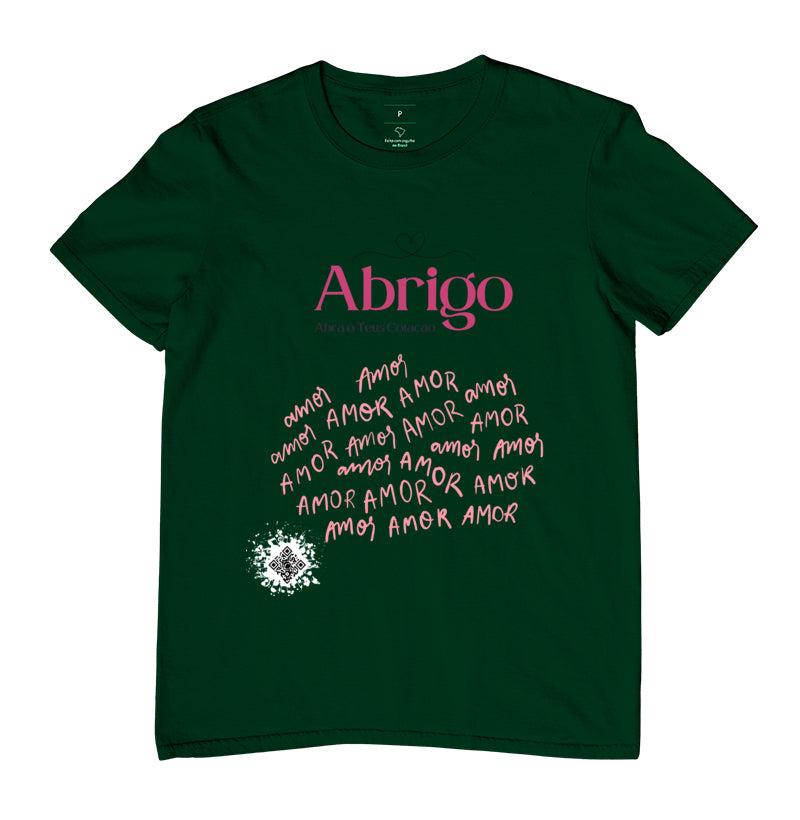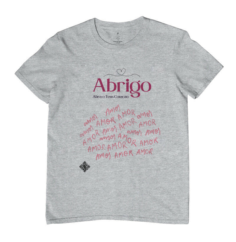 A frase "Abrigo" estampada na camisa nos lembra da proteção divina que encontramos em meio às tempestades da vida. A tipografia cuidadosamente escolhida destaca a importância da letra da música e cria um impacto visual marcante.