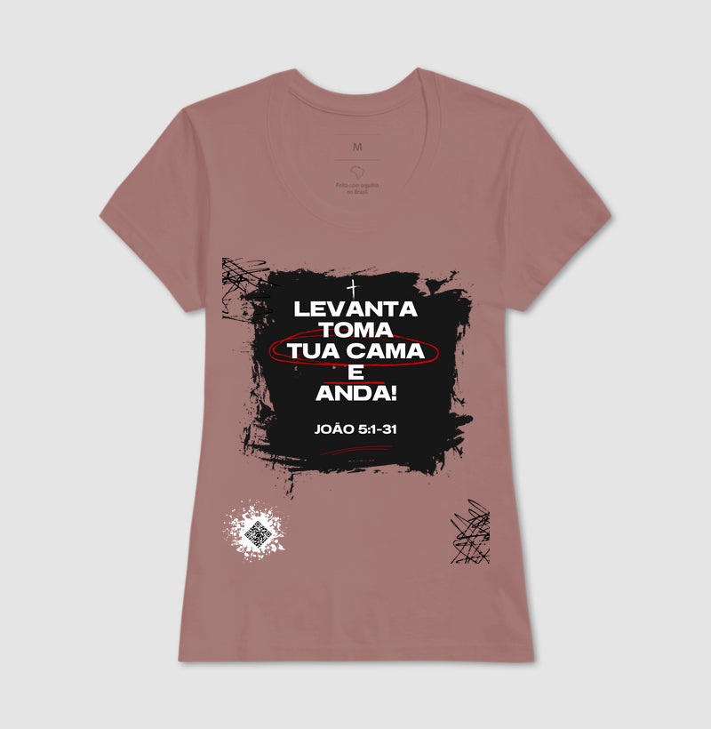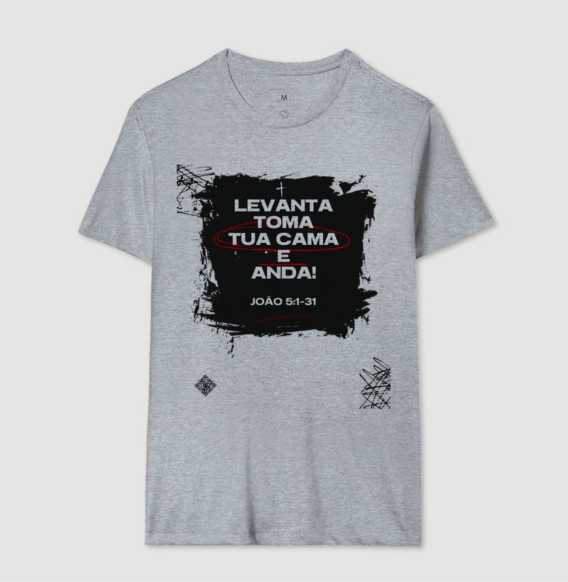 Crie para mim um texto curto para descrever a camisa do cantor gospel "Gilmaria Machado" do Club da Música Belém com a frase "Levanta Toma Tua Cama e anda"